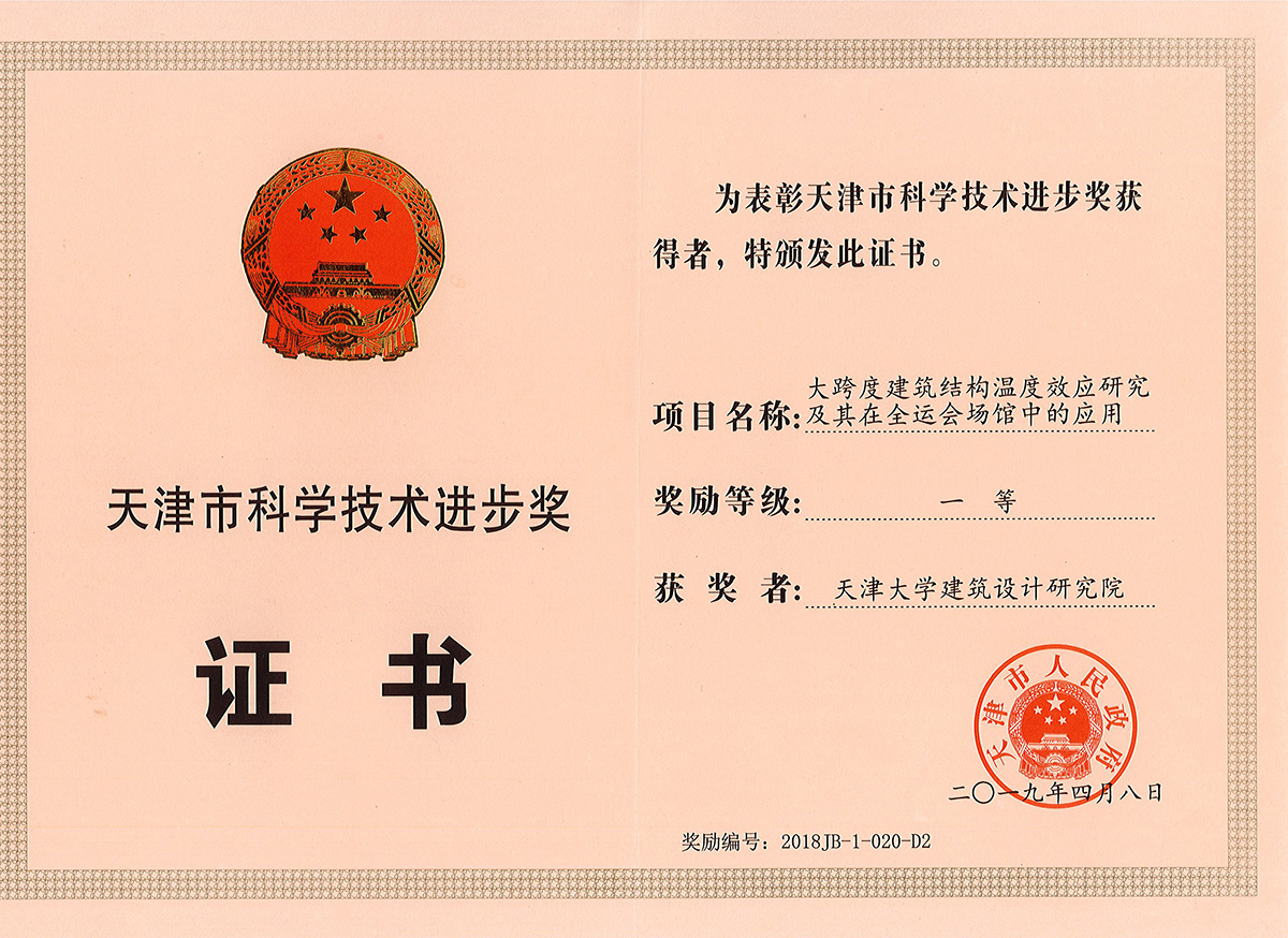 大跨度建筑結構溫度效應研究及其在全運會場館中的應用(天津市科學技術進步獎一等獎)