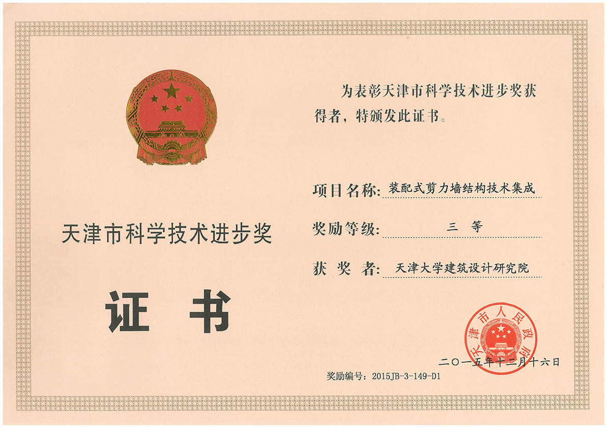 裝配式剪力墻結構技術集成(天津市科學技術進步獎三等獎)