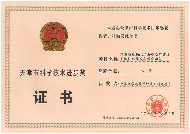 環渤海鹽堿地區海綿城市建設關鍵技術集成與綜合示范(天津市科學技術進步獎二等獎)