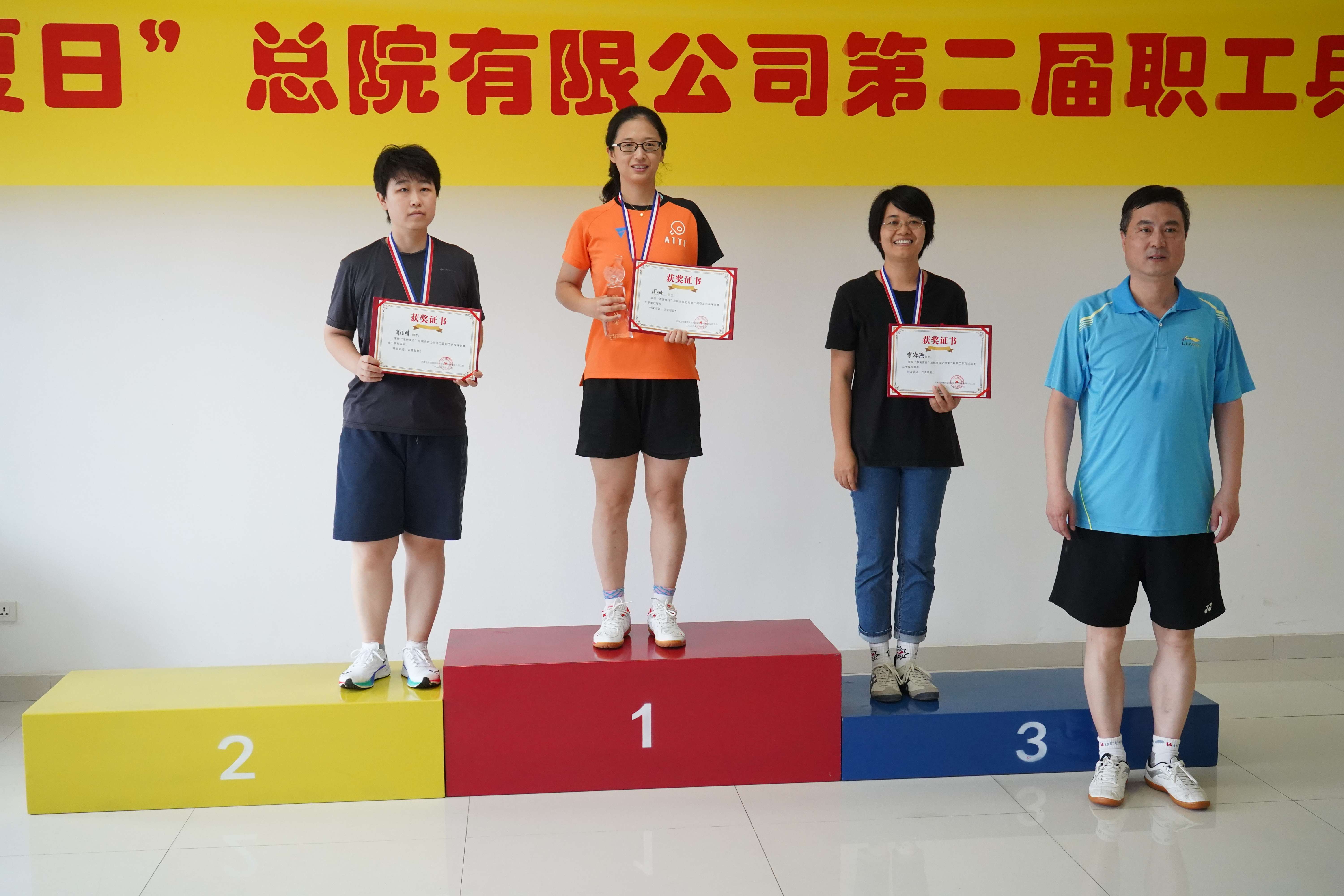 經過三天中午的角逐,在強手如林的男單比賽中,設計八院趙帥技壓群雄,一舉奪得冠軍。女單比賽中,選手們表現出昂揚向上的精神風貌和靚麗風采,最終設計三院周璐奪得了冠軍。雙打比賽的選手們也展現了精湛的球技和良好的心理素質,設計八院的趙帥和孫峣奪得男子雙打冠軍,設計三院的周璐和王聰收獲混合雙打冠軍。本屆比賽新設置的趣味迷你乒乓球團體賽也吸引了眾多高手參加,冠軍最后由規劃二院的王恩來、盧杰和保護規劃所的曹紫佳奪得。正式比賽結束后,孫永利總經理與剛剛奪得男子單打冠軍的趙帥進行了一場表演賽,兩人的精彩球技贏得一陣陣喝彩。最后進行了隆重的頒獎儀式,領導們為獲獎選手頒發了獎杯、獎牌和證書并合影留念。本屆比賽在拉德斯基進行曲的歡快節奏中圓滿結束。