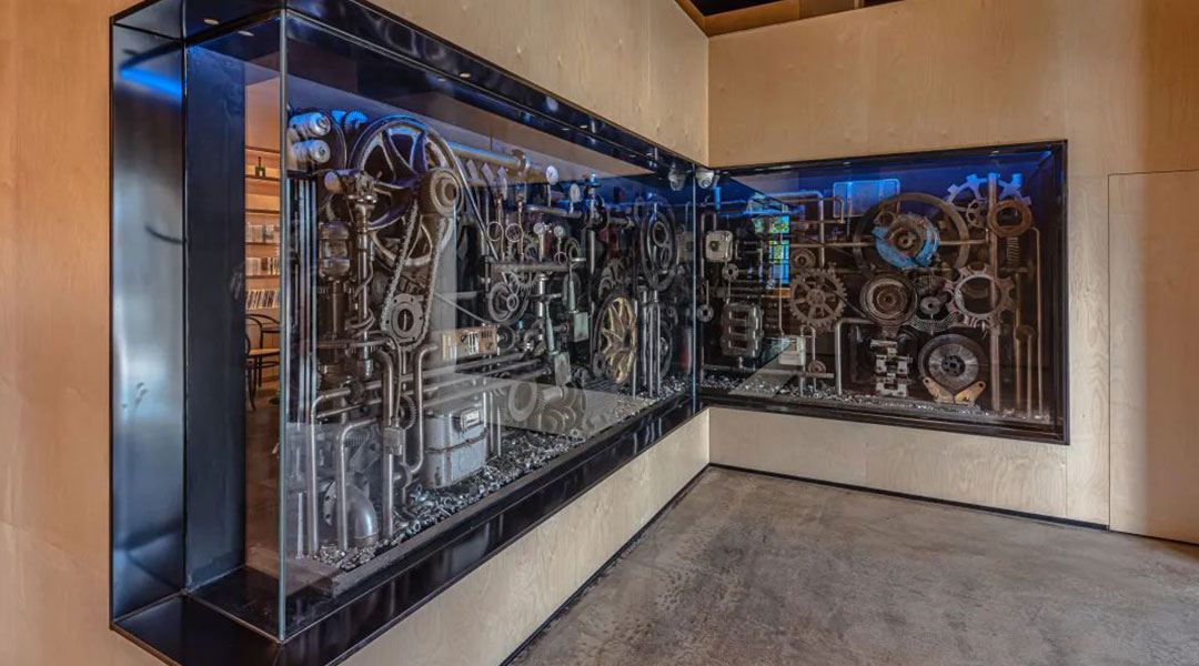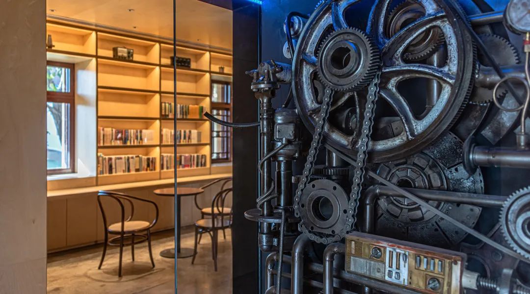 蘇聯(lián)專家樓作為咖啡館,內(nèi)部以一機床廠齒輪等歷史原物為設計元素,整體活化利用,重構城市記憶場所,喚醒城市工業(yè)記憶。