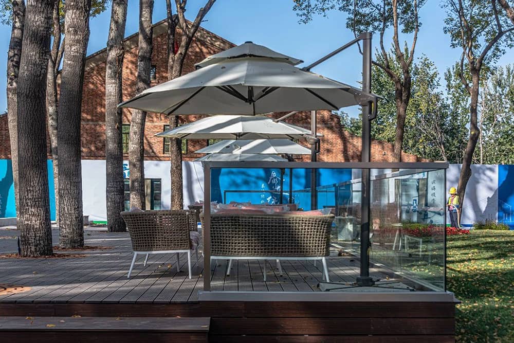 中廠區(qū)以綠化景觀為主,現(xiàn)狀為籃球場與林地。將籃球場重塑變?yōu)槎喙δ軋龅兀A粼谢@球記憶,兼顧舉辦活動的功能;林地則活化為大樹庭院,增加景觀平臺;林下種植景觀花卉,形式生態(tài)自然的廠區(qū)記憶。