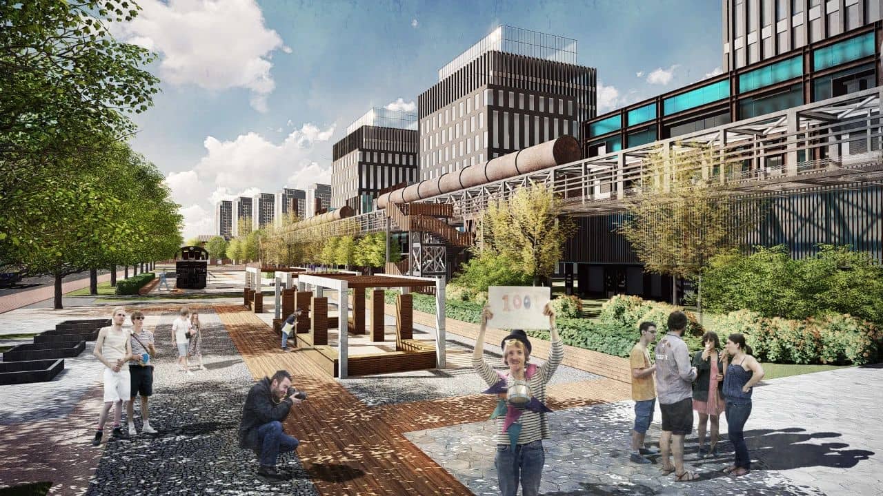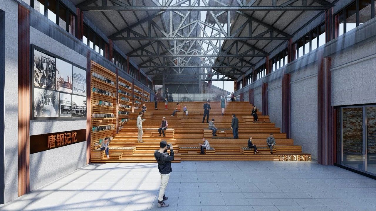 規劃將二煉鋼廠區構筑物、鐵軌、管廊、煙囪等工業歷史記憶點進行保留和建筑景觀提升改造。通過增加現代建筑材質及現代建筑手法,使工業文化與現代功能相結合,將區域打造成二煉鋼科創街區。唐鋼的總部和大腦將留在這里,與鋼鐵生產相關的研發、設計、測試、維修、運維也會留在這里,突顯唐鋼地區本身獨特的工業魅力,綻放唐鋼地塊的新紀元新風彩。