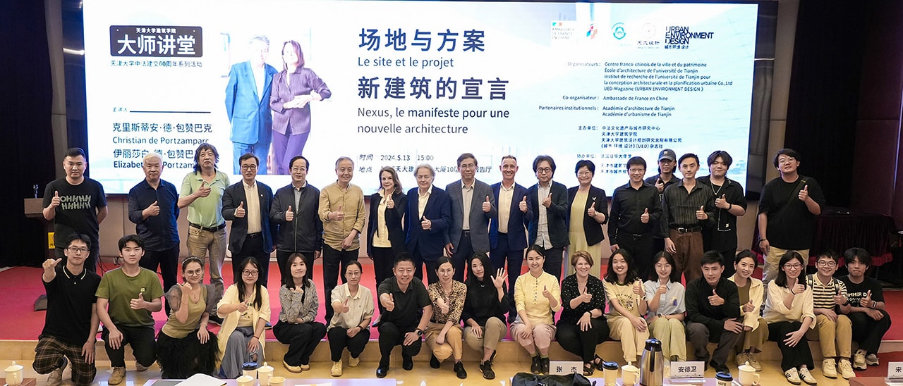 2024年5月13日下午15:00,由中法文化遺產(chǎn)與城市研究中心、天津大學(xué)建筑學(xué)院、天津大學(xué)建筑設(shè)計(jì)規(guī)劃研究總院有限公司(以下簡稱天大設(shè)計(jì)總院)和《城市 環(huán)境 設(shè)計(jì)》(UED)雜志社聯(lián)合主辦的天津大學(xué)中法建交60周年系列活動(dòng)+大師講堂主題為“場地與方案”“新建筑的宣言”的講座在1895天大設(shè)計(jì)總院10層國際報(bào)告廳順利召開。