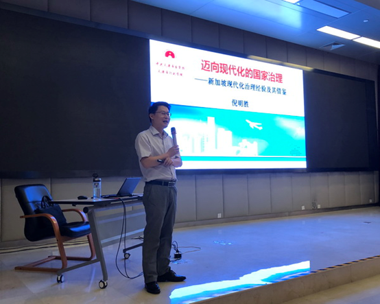 倪明勝教授通過魚尾獅的前世今生、星島崛起的奧秘所在、新加坡經(jīng)驗到天津治理現(xiàn)代化三大板塊,結(jié)合建筑設(shè)計工作特點,深入淺出,詳細(xì)闡述了新加坡的資源環(huán)境條件,風(fēng)土人情概況,建筑精品意識,引領(lǐng)大家了解新加坡三任總理的治國理念與實踐方法、新加坡政治與治理的框架模式,新加坡的動態(tài)治理經(jīng)驗與天津治理借鑒以及從而引發(fā)的思考。倪明勝教授表示,雖然新加坡的發(fā)展模式和經(jīng)驗對于我們有著無法完全復(fù)制的局限性,但其長期以來,“正視危機、務(wù)實求新、勇于求變、以民為本、砥礪奮進”的精神非常值得我們學(xué)習(xí)和借鑒。