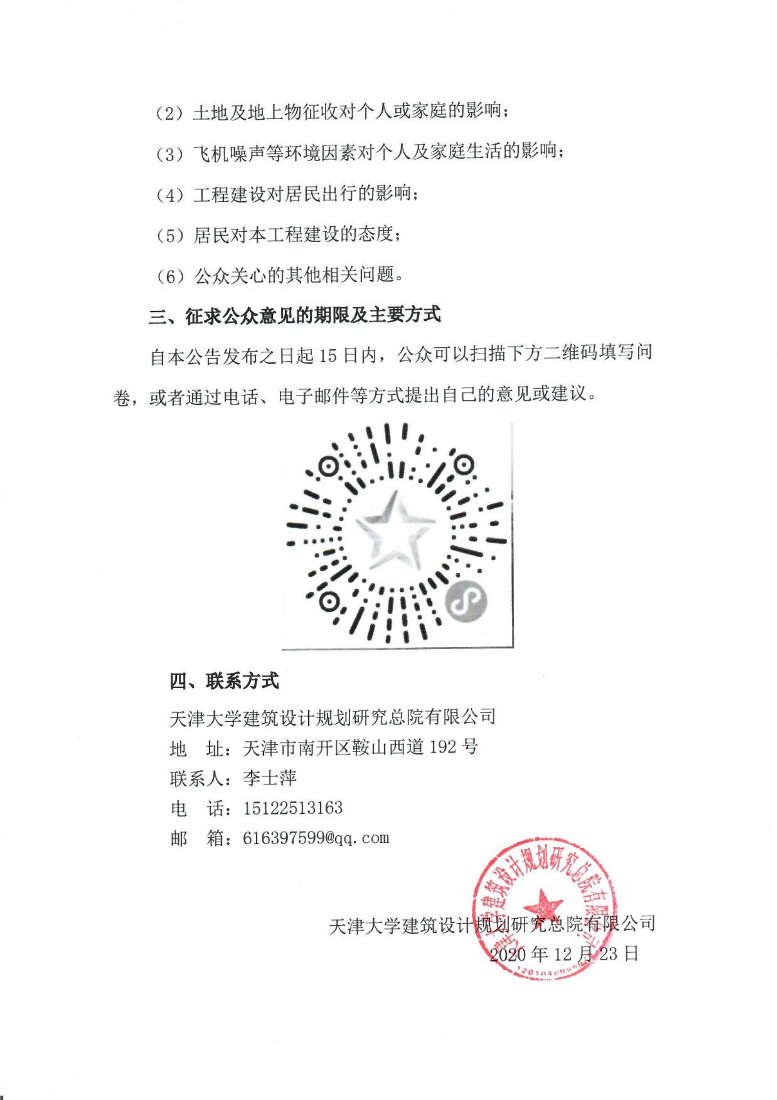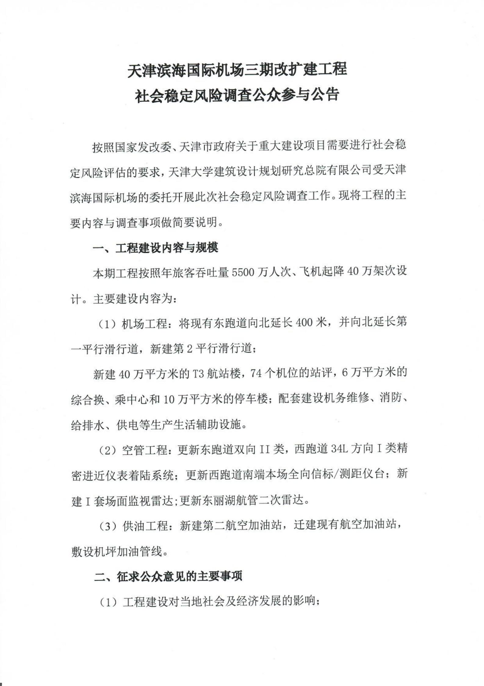 天津濱海機場三期改擴建工程社會穩(wěn)定風險調查公眾參與公告