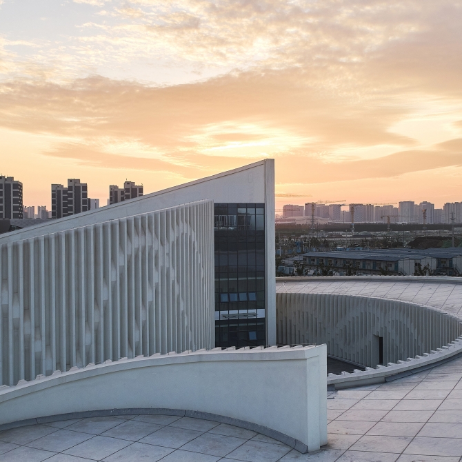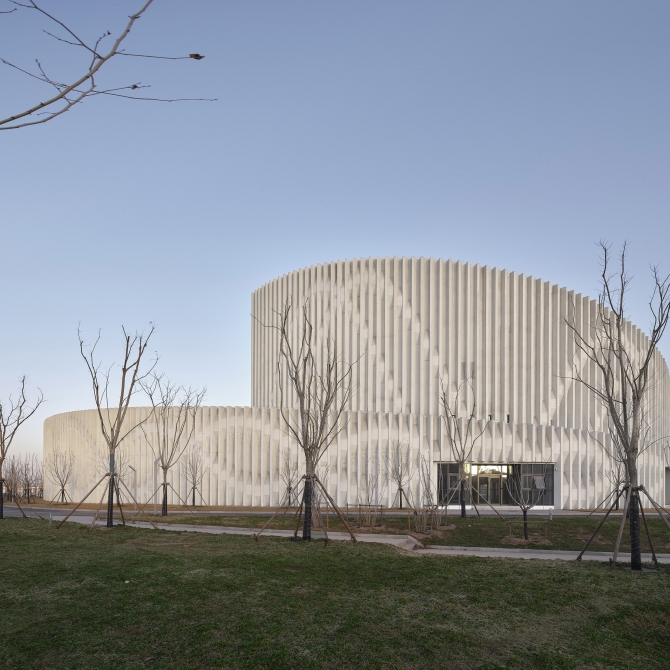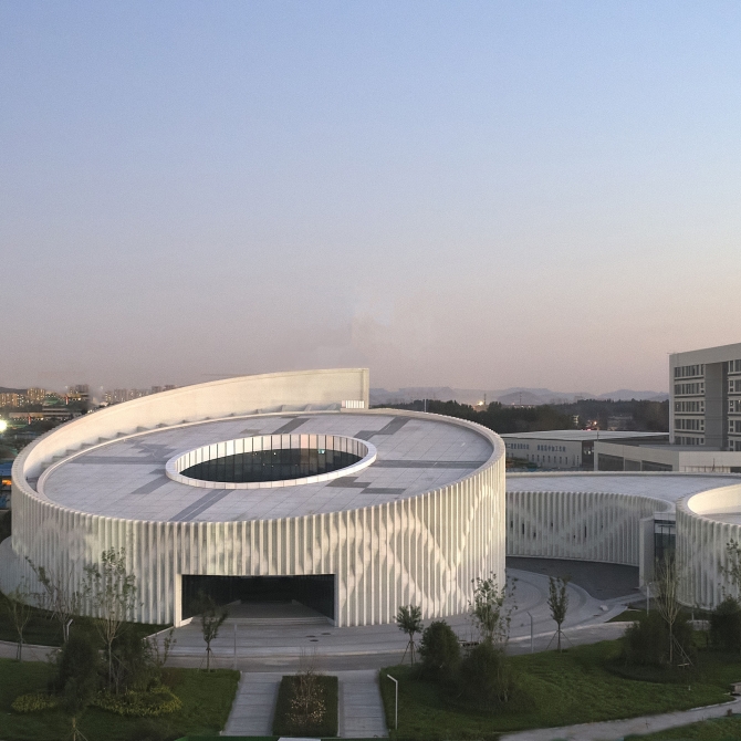 山東第一醫(yī)科大學醫(yī)學博物館呈現(xiàn)一種簡單、靜謐,形式內(nèi)向而又富有活力和動感的建筑意向。它歡迎人們進入、感受生命的神奇。高低起伏、螺旋向上的層次感帶來豐富的空間感受,同時這種向上的狀態(tài)似乎在傳達生命積極向上的姿態(tài)、講述生命的力量。同時,曲線的建筑姿態(tài)呈現(xiàn)一種柔美的空間形態(tài),與螺旋向上的建筑立面相結(jié)合。我們希望傳達的是生命的柔與剛、靜與動、矛盾與和諧。
