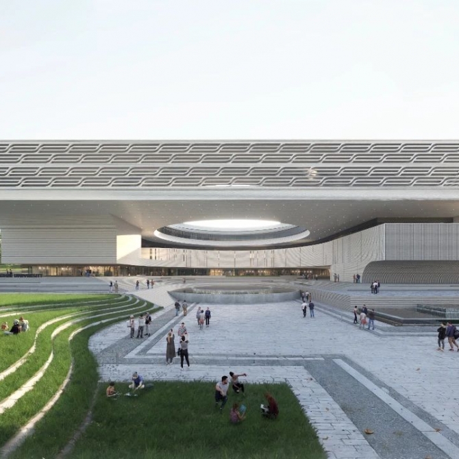 一個(gè)在山海間巍巍升起、承載著山海文化和校園精神的“山海水環(huán)”成為校園與山海對(duì)話(huà)的第一印象空間,博物館群宛若莊重、濃縮的文化衛(wèi)城,守護(hù)文化寶藏、彰顯開(kāi)放胸襟、體現(xiàn)青島魅力。