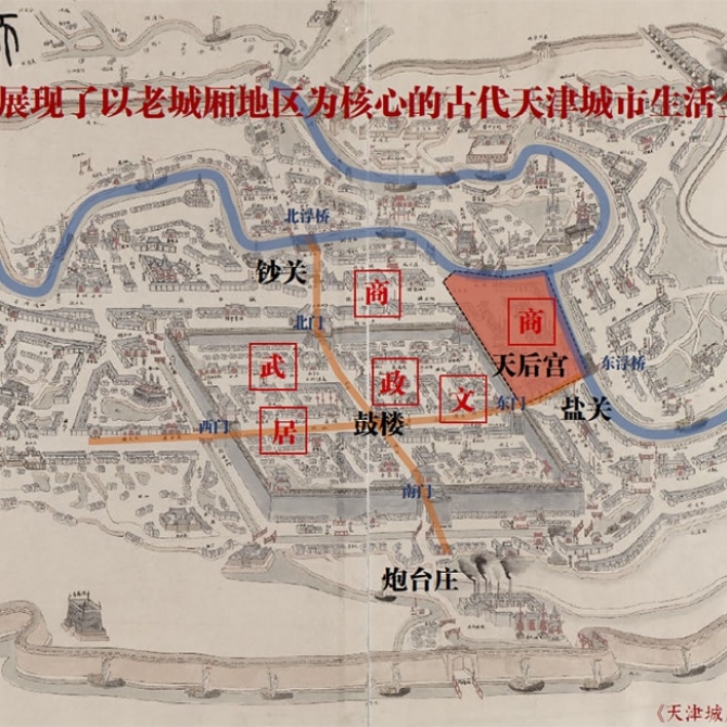 在本項目之前,天大設計總院完成了“老城廂—古文化街”片區城市更新概念規劃,以打造“中國北方運河文化旅游休閑區、天津傳統文化開放式博物館群、海河津韻主題沉浸街區”為目標,以老城廂、古文化街兩個歷史文化街區的整體保護為基礎,將兩個街區的多個特色歷史文化節點、南運河和海河景觀串珠成鏈、連線成片,形成了“環游老城廂,一日六百年”的漫游體系。打造高品質的生活空間,植入文旅產業運營體系,提供更多文旅融合精品和獨具魅力的文化旅游體驗。