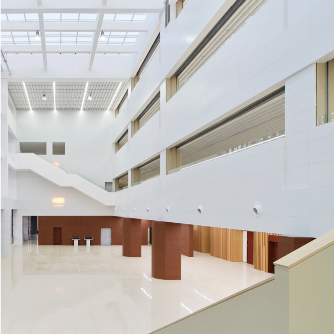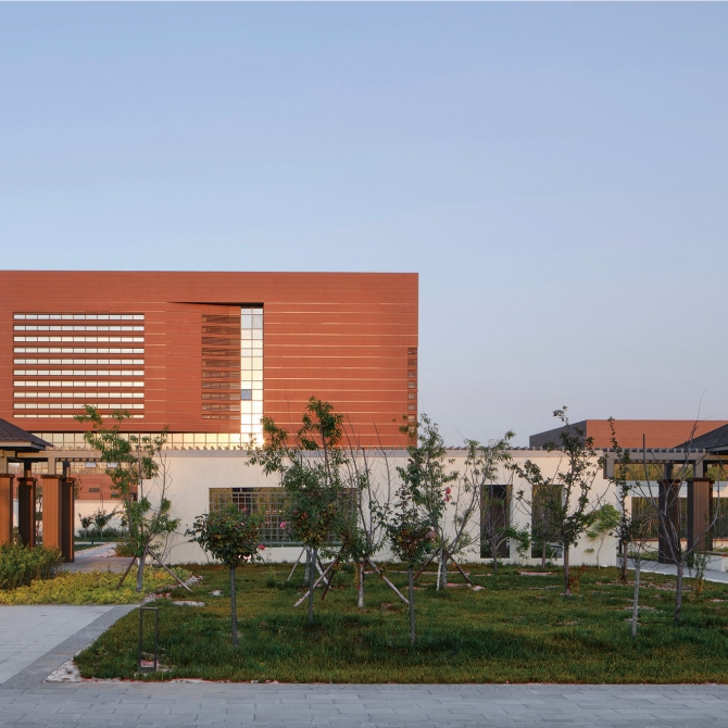 德州高級(jí)師范學(xué)校是由平原師范、德州幼兒師范臨邑師范三所歷史悠久的師范學(xué)校合并而成,特色鮮明底蘊(yùn)深厚。各功能建筑結(jié)合不同的使用特點(diǎn),建筑表情內(nèi)斂而克制,在陽光的映襯下,呈現(xiàn)出優(yōu)雅的光影變化。