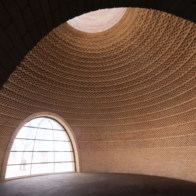 室內設計也處處體現出器皿的設計構思,入口處內凹的“壇子”的形狀形成了天然的雨棚,也形成了立面上的“視覺焦點”,隨之的半球形的大廳則將人帶入了奇妙的空間體驗中。