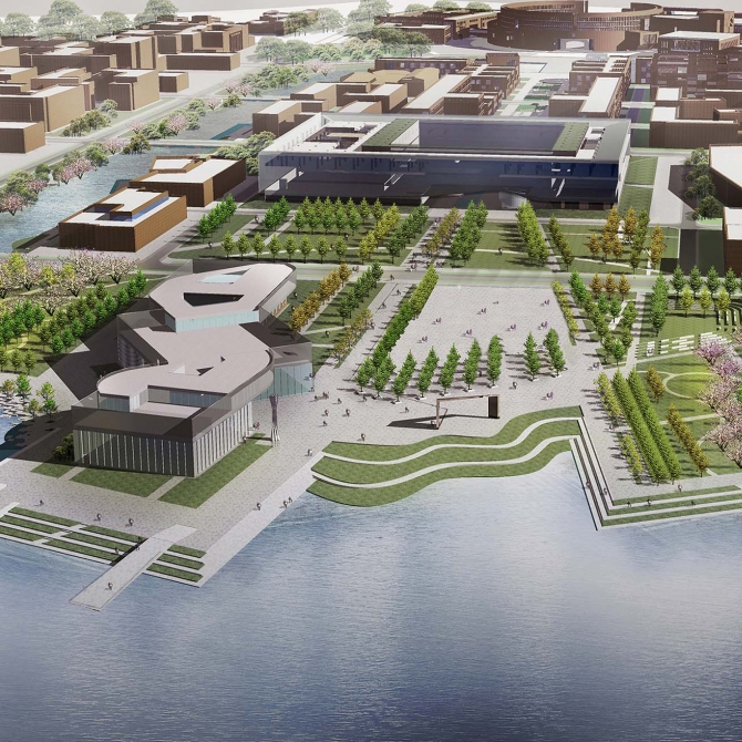 在天津大學(xué)北洋園校區(qū)景觀設(shè)計項目中,傳承百年老校的血脈與基因,引入城市雨洪管理,建設(shè)生態(tài)可持續(xù)校園,并以“以學(xué)生為中心”的人性化景觀為核心設(shè)計理念貫徹始終。在3700畝的校園景觀中,將生態(tài)化措施-雨洪管理系統(tǒng)切實地應(yīng)用于校園景觀建設(shè)中,全面采用“綠色生態(tài)、環(huán)境友好”的景觀生態(tài)化技術(shù)措施,成為全國首個在如此大規(guī)模場地中系統(tǒng)化、科學(xué)化應(yīng)用生態(tài)雨洪管理系統(tǒng)的校園景觀環(huán)境設(shè)計,同時也使之成為天津這一鹽堿地區(qū)建設(shè)海綿城市的示范區(qū)。