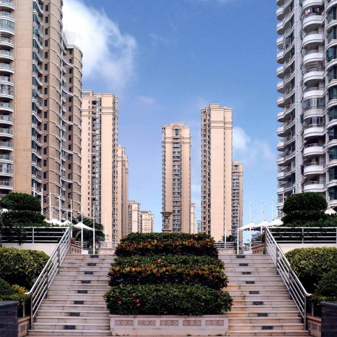 設計中居住建筑底層采用挑高架空的模式,使得住區組團內部空間圍合而不封閉,建筑與建筑之間各自相對獨立,既可以將陽光引入開闊的庭園,又可以擁有足夠的陰涼場所供住區居民休閑和棲息,開敞的空間形成良好的自然通風,形成舒適的小氣候環境,彌補炎熱夏季及陰潮冬季不利的氣候影響。庭院內大片的綠地、水景和起伏的地勢,與城市空間互動,構成了獨特的熱帶海島風光的生態大花園。