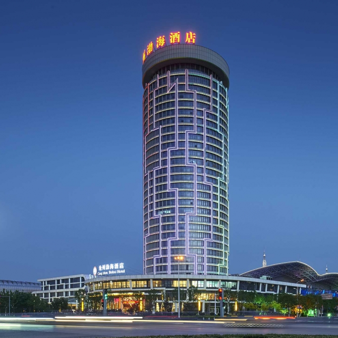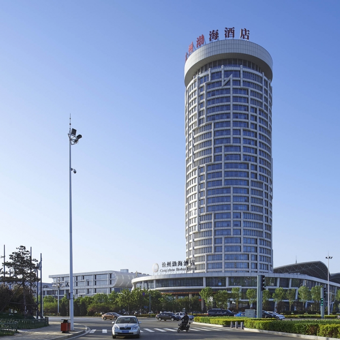 滄州管業大廈項目比鄰滄州市行政服務中心、會展中心,設計建成集酒店、辦公及商業為一體的超高層建筑,建筑高度為126.7米。