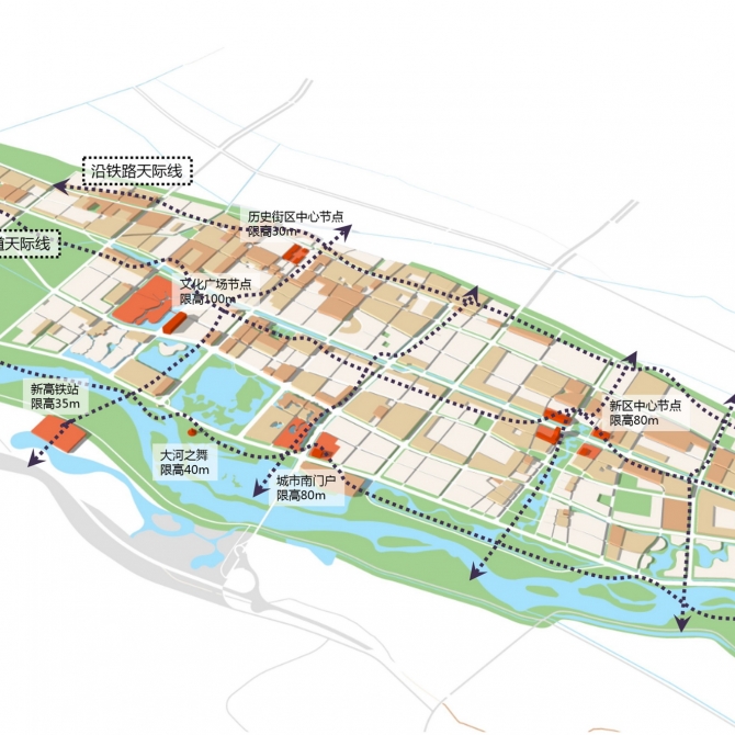 通過對(duì)優(yōu)質(zhì)核心風(fēng)貌資源梳理提煉,確定中衛(wèi)市特色風(fēng)貌定位為山、河、沙、都,打造全景中衛(wèi)。風(fēng)貌策略著眼城市山水格局的保護(hù)與重構(gòu)、歷史文化脈絡(luò)的傳承與延續(xù)、活力空間系統(tǒng)的營(yíng)造與整合、風(fēng)格色彩和建筑風(fēng)格的研究與提煉,并提出了貫穿規(guī)劃管理全過程的風(fēng)貌實(shí)施方略。