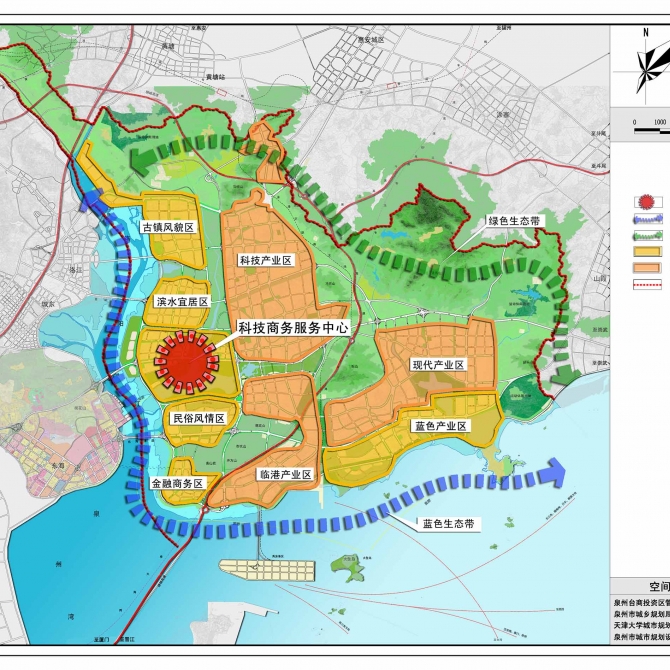 規劃以多元經濟空間構建和生態安全格局為理論導向,對泉州臺商投資區所處區域經濟及生態地理空間環境進行分析,運用多角度探尋解決城市問題的分析方法以及統籌發展、重點突出的規劃思路。