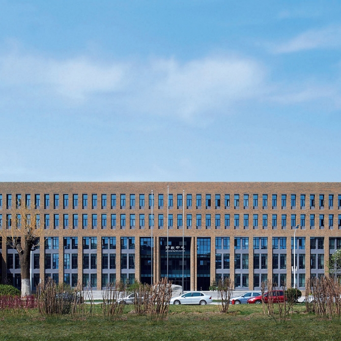 注重細部刻畫,材料與建筑細部可以看出經(jīng)過了精心的設計,清水墻面砌體的運用表達了建筑的文化氣息,內部設計有五層通高長向的中廳是建筑的一大特色,中庭頂部為可電動開啟的玻璃穹頂采光通風,體現(xiàn)節(jié)能環(huán)保理念,頂部采用橫向鋼結構橫桿遮陽,與走道的欄板形成豐富的光影效果,共享空間每層各有不同的空間感受。