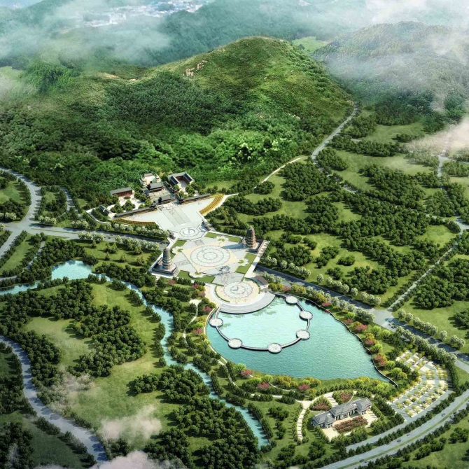 項目位于柳城縣鳳山古鎮網山南麓開山寺前,設計立足于基地所處的景觀環境,進行旅游文化廣場及鳳鳴湖設計。