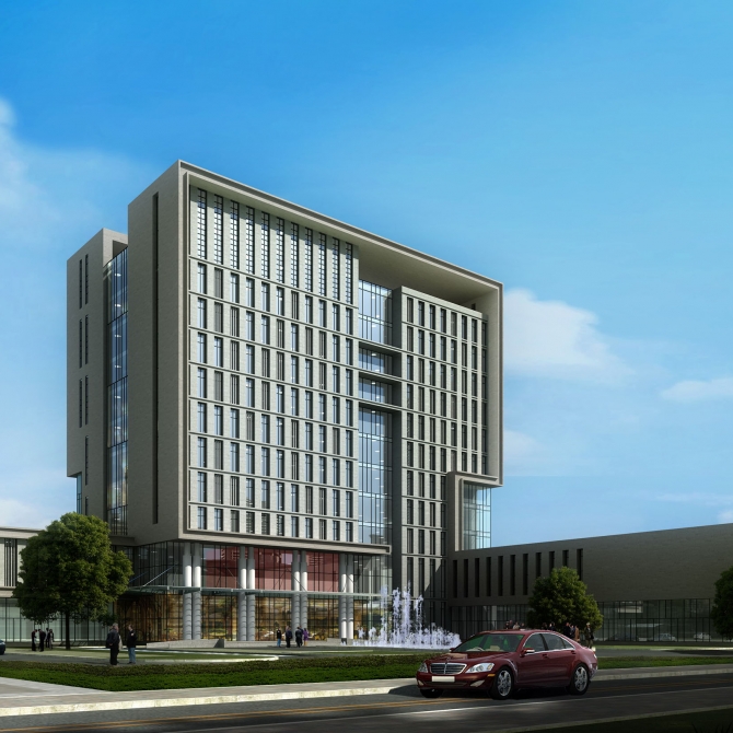 項目采用主樓加裙房的布局方式,主樓11層,裙房2層,地下1層。主要功能為測繪指揮中心、國土局等對外服務和指揮功能。采用高效率的平面結構,形成通高的中庭空間,將陽光引入建筑室內。地下室為人防及設備用房,平時作為車庫使用,可停放約80輛機動車。