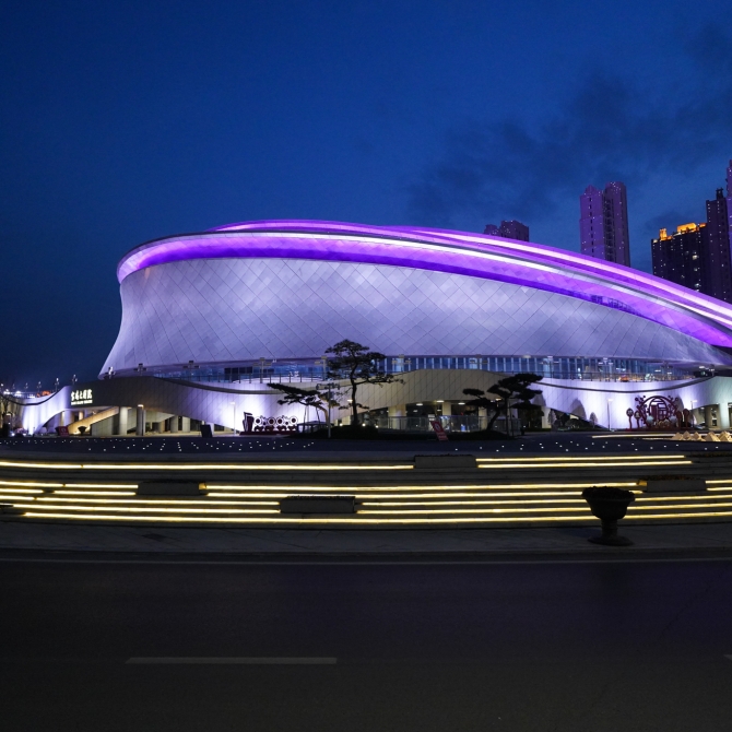 外立面造型繼承了“鳳凰羽毛”的設計立意,建筑造型由雙曲的鋁板裝飾幕墻圍護而成;外檐裝修主要采用鋁板裝飾構件幕墻、玻璃幕墻及涂料外保溫墻體。