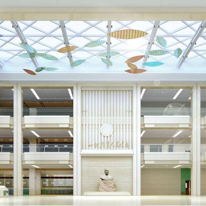 醫院由于人員比較密集,是大人流量的公共空間,因此設計上也必須與這個特點相適應,以明快的色調和采光效果,確保空間的流暢和交通便捷,使病人用最快的速度到達他要去的科室。因此,明快的設計風格可以避免不必要的視覺干擾,提高空間效率,確保醫療功能的主導地位。