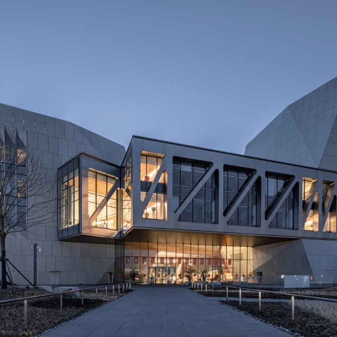 天津茱莉亞音樂學院總建筑面積3.6萬平米,地上5層,地下2層,音樂學院包含4個主要表演場館:音樂廳、演奏廳、黑盒劇場和排演廳,并由5座連廊將它們聯系在一起。