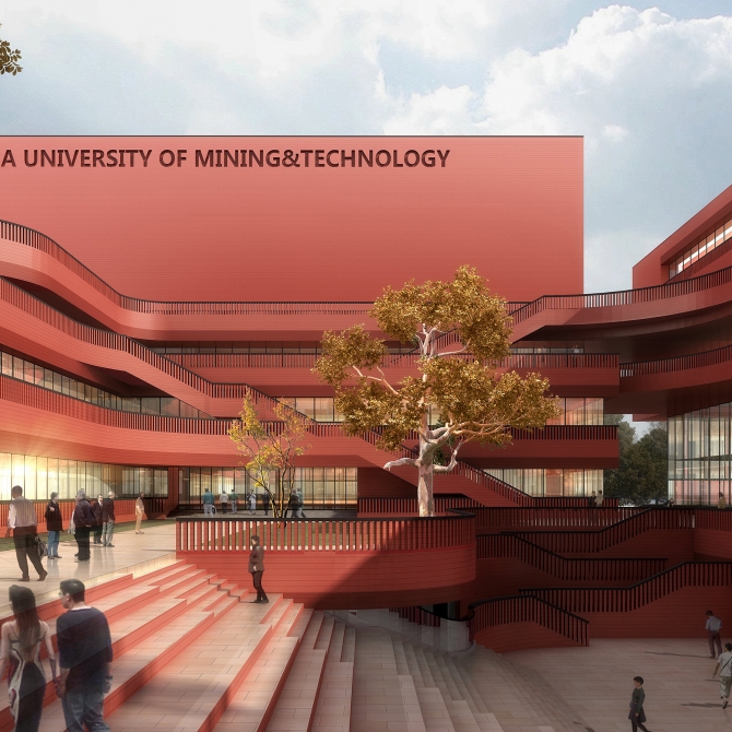 具有“礦坑”意向的活力庭院采用層層跌落的設(shè)計(jì)手法,把綜合實(shí)驗(yàn)樓的各個(gè)功能聯(lián)系整合,形成了集約科學(xué)的智慧山谷,圖書館置于綜合樓的頂部,具有最安靜和最佳的景觀視線,眺望整個(gè)校園,并成為標(biāo)志性建筑,營(yíng)造礦學(xué)高峰。