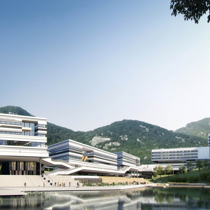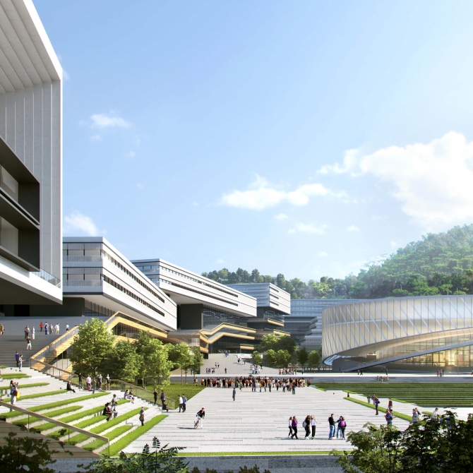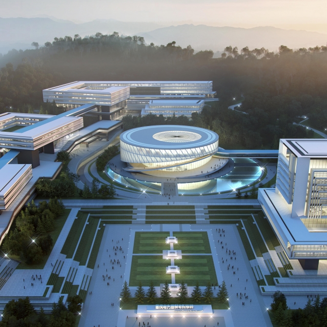 大氣靈動的帶形建筑群依山傍勢,起伏跌宕,與山水呼應;完備的學生教學生活空間與自然山水環境景觀充分融合,組成富有趣味、智慧健康的美好山地校園生活,打造出“書香溢谷”的校園文化氛圍。“青春悅動”文體活動中心面向城市充分開放;富有電力科技特色的校園建筑呈現出現代時尚、簡潔大氣的青春風采校企互動大樓為打造未來校企雙制、工學一體的高素質創新人才,提供了多樣化的實踐實訓基地教城融合拓展區為學校升級、教師生活、產教城融合創新預留了寶貴的發展空間。